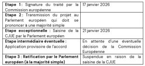 Pour mémoire, le vendredi 9 janvier 2026, le Conseil de l’Union européenne (« UE ») s’était prononcé favorablement sur l’accord commercial UE-Mercosur.